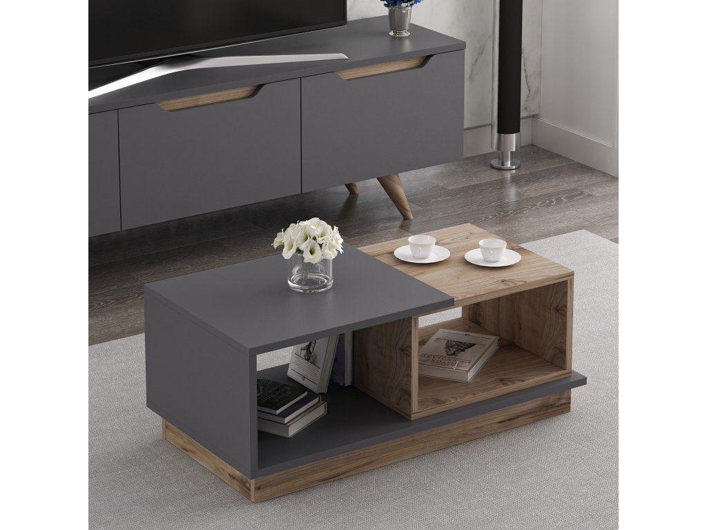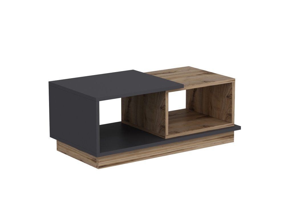 Vďaka svojmu jednofarebnému poňatiu a elegantnému dizajnu vyžaruje náš konferenčný stolík sofistikovanosť a moderný šarm. Kombinácia antracitovej a dubovej farby vytvára výrazný kontrast, ktorý bez námahy zapadne do akéhokoľvek interiéru a dodá vášmu priestoru nádych novoty.