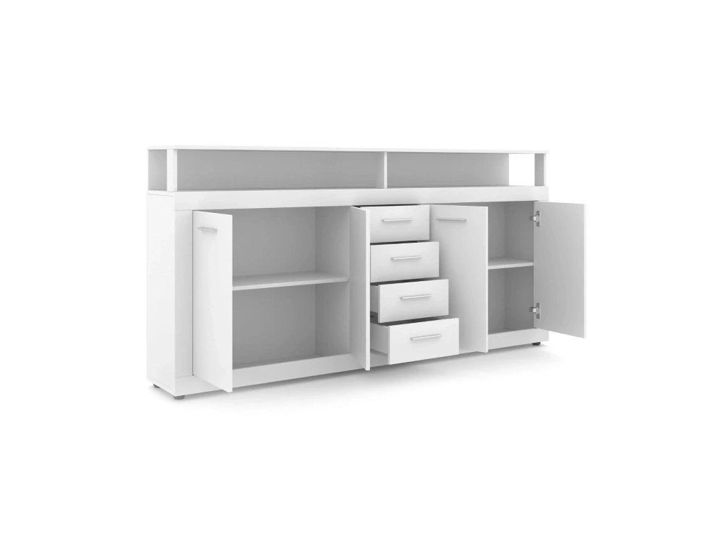 Popis produktu Parametre: Štýl: moderný Farba konštrukcie: biela Materiál konštrukcie: MFC + HDF Farba frontu: biela Materiál frontu: MDF Materiál nôh: plast Farba nôh: čierna Materiál úchytiek: plast Farba úchytiek: strieborná Rozmery: Výška nábytku
