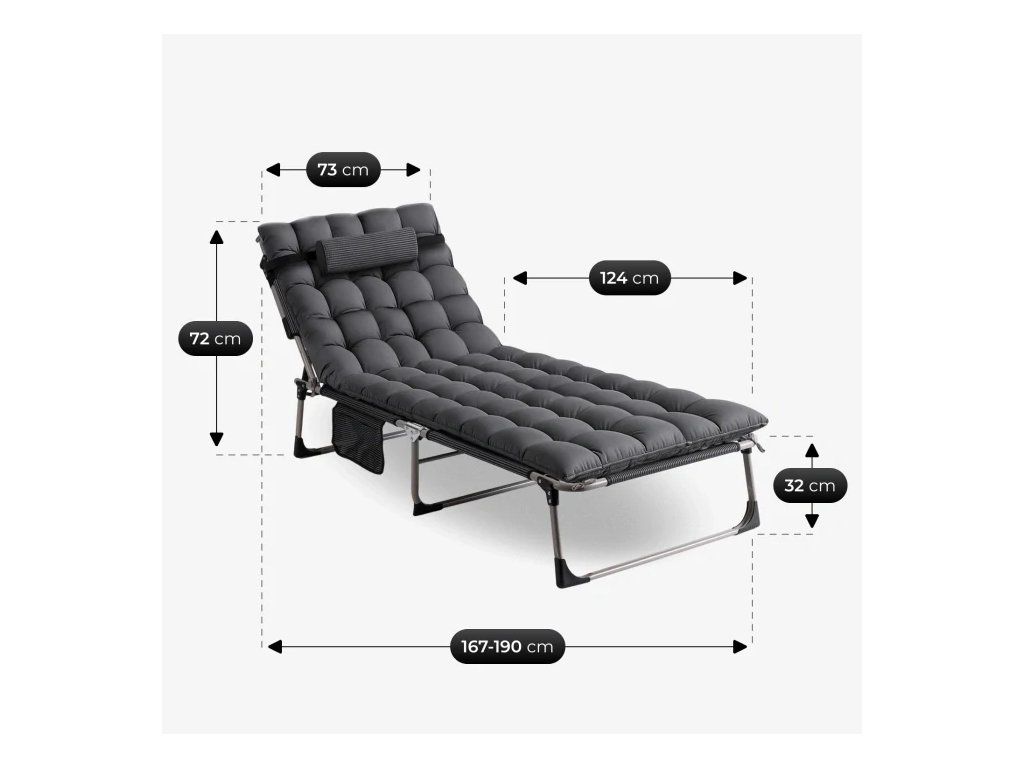 Popis produktu Parametre: Materiál: látkaFarba: siváPodrúčky: nieOpierka hlavy: ánoPodnožka: ánoFarba konštrukcie: čiernaMateriál konštrukcie: kovFunkcia rozkladania: ánoFunkcia spania: áno Rozmery: Hĺbka kresla: 190 cmŠírka kresla: 73 cmVýška sedadl