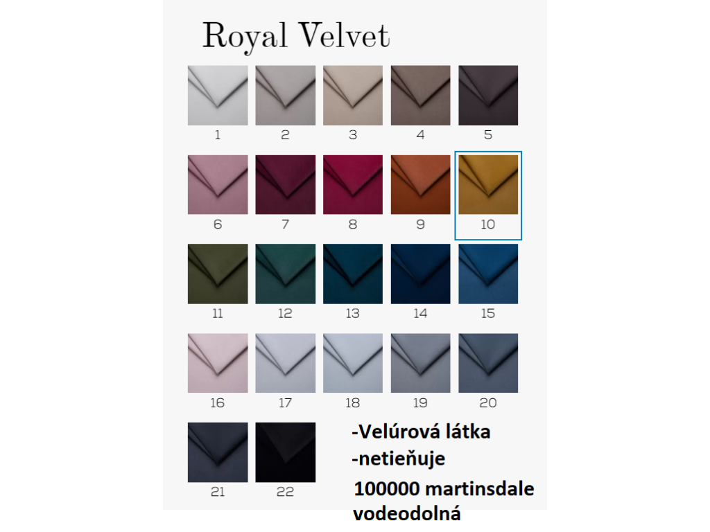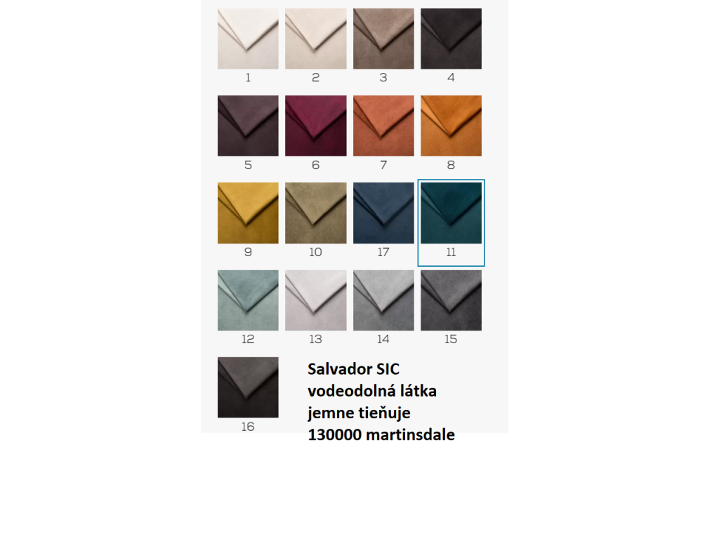 Výber látky: Látku si vyberte podľa vzorkovníkov vo fotogalérii produktu. Názov látky, napríklad Salvador 10, Monolith 37 alebo Baloo 2075, napíšte do poznámky v objednávke. Po prijatí objednávky vás budeme telefonicky kontaktovať a výber látky spolu potvrdíme.