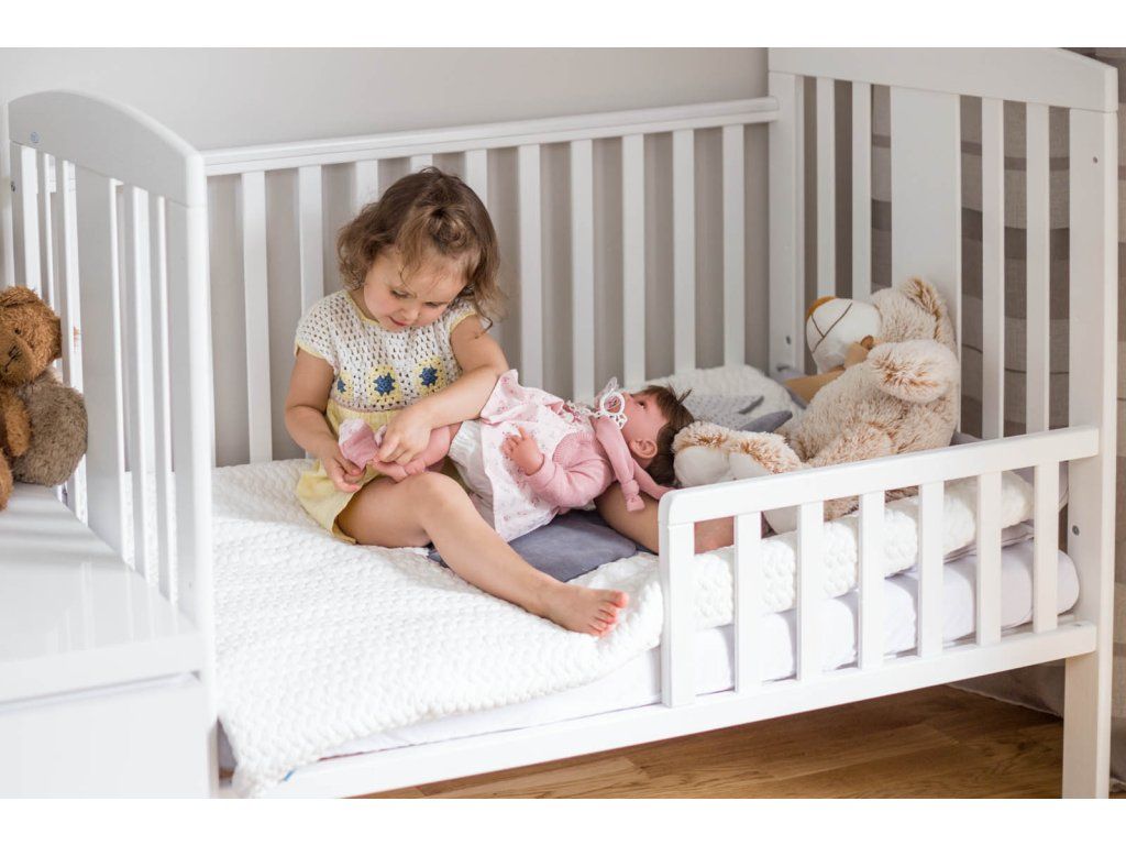 Posteľ má dva odnímateľné priečky, ktoré neskôr umožnia dieťaťu jednoduchšie nastupovanie a vystupovanie.