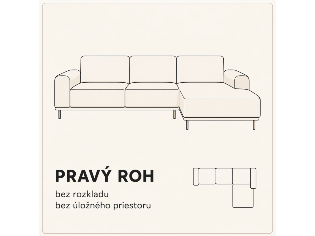 Úložný priestor : Sedačku je možné vyrobiť s úložným priestorom, otváraným plynovými piestami, alebo bez úložného priestoru.